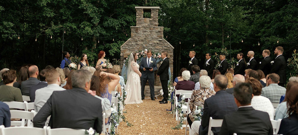 Choose from multiple ceremony sites, each with its own charm — from wooded backdrops to our cozy chimney. These natural spaces set the stage for intimate, unforgettable vows.